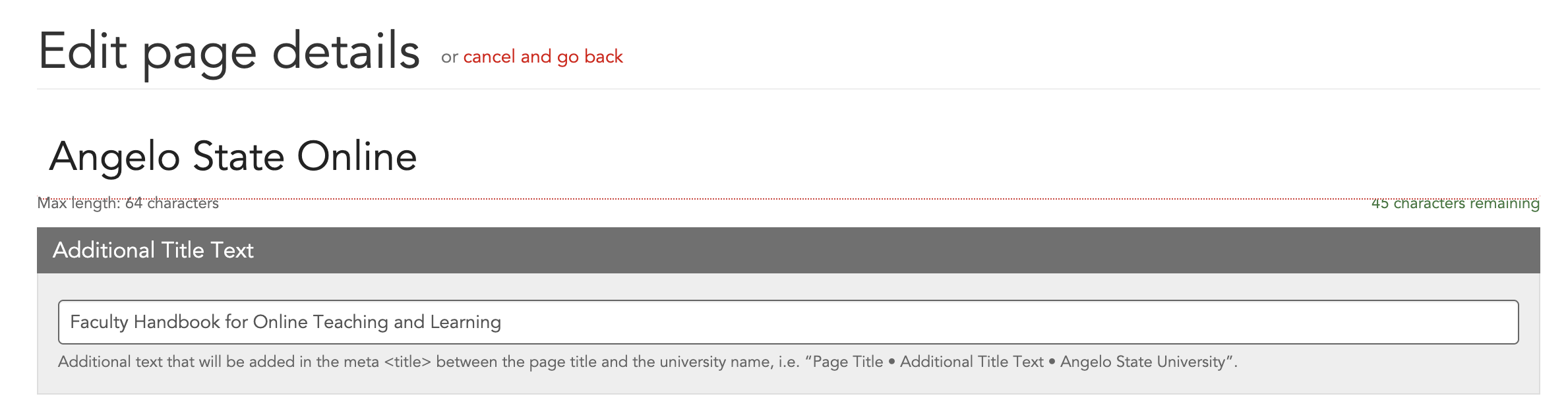An editor would like a page title that is 65 characters (which, yes, we can all agree is very long!), but there is apparently a limit of “short title” to 64 characters. At least an error dialogue says so.